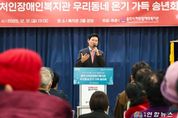 전국연합뉴스 박남호 기자 | 용인특례시는 12일 용인시처인장애인복지관이 한해 동안 나눔을 실천한 후원자와 자원봉사자를 위한 ‘우리동네 온기가득 송년회’를 열었다고 밝혔다. 이 행사에 참석한 이상일 용인특례시장은 장애인복지를 위해 헌신한 후원자와 자원봉사자, 복지관 관계자들을 격려하고, 감사의 마음을 나눴다. 이상일 시장은 “처인장애인복지관은 장애인 복지 수준 향상을 위해 훌륭한 활동을 해왔다”며 “이 자리에 계신 후원자와 자원봉사자 여러분의 헌신적인 노력은 장애와 비장애의 벽을 허물고, 장애인에게 희망을 전달했다”고 말했다. 이 시장은 “용인특례시는 장애인 복지 활동과 정책을 선도적으로 운영하고 있고, 장애인을 위한 시설개선에도 적극 노력하고 있다”며 “장애인복지관에 많은 후원이 모이고 있고, 이 마음이 용인특례시를 따뜻한 공동체 사회로 만들고 있다”고 했다. 이날 행사에는 이상일 시장을 비롯해 지역 주요 내빈, 후원자, 자원봉사자, 복지관 이용자 등 200여 명이 참석했다. 행사는 식전 공연을 시작으로 송년회 영상 시청, 송년사 및 축사, 유공자 표창, 응원 메시지 퍼포먼스 순으로 진