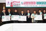 전국연합뉴스 박남호 기자 | 용인특례시는 새해에도 다양한 기업과 기관, 단체들이 나눔문화 확산을 위해 마련한 ‘사랑의열차 이어달리기’에 동참했다고 7일 밝혔다. 6일 시청 접견실에서 ‘행복을 더하는 기부, 기부로 바뀌는 용인’을 주제로 열린 기탁식에서는 지역내 7개 기업과 단체, 기관 관계자들이 이상일 시장을 만나 어려운 이웃을 돕기 위한 성금을 전달했다. 이날 전달식에서는 ▲용인시 식품·공중위생단체(성금 240만원) ▲낙우회(798만원 상당 멸균우유 8400개) ▲용인레미콘(주)(성금 5000만원) ▲용인시생활폐기물 수집·운반협의회(성금 1000만원) ▲세양조경(주)(성금 500만원) ▲법무부 청소년 범죄예방위원 기흥지구위원회(성금 300만원)가 ‘사랑의열차 이어달리기’에 동참했다. 나눔에 참여한 단체와 기관의 회원들은 자발적으로 십시일반 모은 성금과 성품을 어려운 이웃에게 잘 전달해주길 바란다는 뜻을 시에 전달했다. 이상일 시장은 “용인특례시는 어려운 이웃을 위한 복지서비스를 강화하고 있지만, 우리가 챙기지 못하는 부분이 있다. 이 부분을 이 자리에 계신 분들과 시민 여러분이 채워주면서 용인을