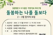 전국연합뉴스 박점규 기자 | 의정부시는 2월 9일부터 19일까지 돌봄활동가를 위한 자기돌봄·역량 강화 프로그램 ‘돌봄하는 나를 돌보다’ 2~3월 참가자를 모집한다. 이번 프로그램은 요양보호사, 아이돌보미, 사회복지사 등 사회취약계층을 위해 일하는 돌봄활동가의 심리적 회복과 근로 의욕을 높이기 위해 마련했다. 프로그램은 ▲2월 23일 아로마클래스(천연 원료 화장품 만들기) ▲3월 24일 싱잉볼 명상 요가(싱잉볼과 함께하는 힐링 요가) 2개 과정으로, 문예숲 커뮤니티센터 흥선점(의정로 132번길 36, 흥선어울림센터 2층)에서 오전 10시부터 낮 12시까지 운영한다. 수강료는 무료이며, 각 과정별 10명을 선착순으로 선정한다. 온라인(홍보 포스터 내 QR코드 접속) 또는 문예숲 커뮤니티센터 흥선점 방문(평일 오전 9시~오후 6시, 점심시간 낮 12시~오후 1시 및 주말 제외)을 통해 신청 가능하다. 선정 결과는 2월 중 대상자에게 개별 통보될 예정이다.