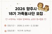 전국연합뉴스 박점규 기자 | 양주시자원봉사센터는 가족이 함께 참여하는 자원봉사 활동을 통해 건강한 가족문화를 조성하고 지역사회 나눔을 실천하기 위해 가족 단위로 함께 참여하는 ‘18기 가족봉사단’을 모집한다고 밝혔다. 모집대상은 양주시에 거주하는 2인 이상 가족으로 월 1회 정기적인 봉사활동 참여가 가능한 가족이며 총 15가족을 선착순 모집한다. 가족봉사단은 부모와 자녀가 함께 봉사활동에 참여하며 생활 속 나눔을 실천하는 참여형 프로그램으로 단순한 봉사활동을 넘어 가족 간 소통과 협력을 통해 유대감을 높이고 공동체 의식을 함양하는 데 목적이 있다. 제 18기 가족봉사단은 3월 발대식을 시작으로 ▲환경정화 활동 ▲계절별 나눔 활동 ▲재난안전체험 ▲시설봉사활동 ▲고구마경작활동 ▲시 축제 홍보부스 운영 등 매월 셋째 주 토요일마다 월·테마별 활동에 참여할 예정이다. 양주시자원봉사센터 이정주 센터장은 “가족이 함께 봉사활동에 참여하는 경험은 자녀에게 나눔의 가치를 자연스럽게 전달하고, 가족 간 유대감을 강화하는 계기가 된다.”며 “지역사회에 따뜻한 변화를 만들어갈 가족들의 많은 관심과 참여를 바란다.”고