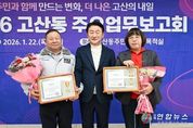전국연합뉴스 박점규 기자 | 의정부시 고산동주민센터는 1월 22일 주민센터 2층 다목적실에서 ‘2026년 주요업무보고회’를 개최했다. 이번 보고회는 ‘주민과 함께 만드는 변화, 더 나은 고산의 내일’을 주제로 지역 주민과 내빈 등 100여 명이 참석한 가운데 2025년 추진 경과 및 2026년 중점 추진 사업을 주민과 함께 공유하기 위해 마련됐다. 행사는 주민자치센터 수강생의 식전공연을 시작으로 ▲새해 인사 및 덕담 ▲지역발전 유공자 표창장 수여 ▲주요 업무 보고 ▲주민과의 대화 순으로 진행됐다. 고산동장은 주요업무 보고를 통해 ▲고산동 신설 ▲물류센터 부지 공공주택 공급 전환 ▲대형유통시설 입접 관련 협약 ▲아이돌봄시설 클러스터 시범사업 ▲학생 통학버스, 똑버스 등 대중교통 개선 및 나눔주차장 조성을 통한 교통환경 개선 등 생활밀착형 사업의 추진 경과를 공유했다. 또, ▲디자인도서관 조성 ▲민락TG 우회도로 개설 ▲법조타운 조성 ▲고산지구 제3공영주차장 조성 ▲주민커뮤니티 공간 조성 ▲민관협력, 모두가 돌보는 온(on)마을 공동체 사업 등 2026년 진행 예정인 핵심 사업을 설명하며 주민과 함께