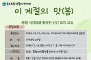 전국연합뉴스 유근택 기자 | 원주시 동부복합생활지원센터는 오는 23일부터 ‘이 계절의 맛 (봄)’ 건강 요리 교실 프로그램 참여자를 모집한다. 이번 프로그램은 봄철 식재료를 활용해 면역력과 활력을 높이는 건강 요리 실습이다. 이를 통해 지역 주민들의 건강하고 균형 잡힌 식습관 형성을 돕는다. 4월 3일부터 24일까지 매주 금요일마다 총 4회에 걸쳐 영양 교육과 요리 실습이 운영된다. 교육은 오전 10시 30분부터 한 시간 동안 비대면으로 진행된다. 모집 인원은 20명이며, 신청은 3월 23일 오전 9시부터 27일까지 원주시 통합예약플랫폼을 통해 선착순으로 접수한다.