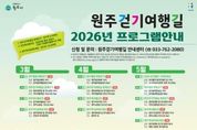 전국연합뉴스 유근택 기자 | 트레킹 도시 원주시는 3월부터 11월까지 ‘2026년 원주걷기여행길 프로그램’을 운영한다. 이번 프로그램은 원주의 역사·문화·생태 자원을 직접 보고, 느끼고, 체험하는 활동을 통해 걷기 운동을 확산하고 시민 건강 증진에 기여하는 것을 목표로 한다. 원주시는 지난해 연인원 50만 명 이상이 찾은 치악산둘레길, 원주굽이길, 원주소풍길 등 우수한 걷기길 인프라를 바탕으로 연간 40여 개의 다양한 걷기 행사와 프로그램을 운영해 시민들로부터 큰 호응을 얻었다. 올해에도 맨발걷기, 함께걷기, 역사길걷기, 야간걷기 등 다채로운 걷기 프로그램과 함께 걷기 강연 및 교육을 운영해 시민들이 일상 속에서 걷기의 즐거움과 건강을 함께 누릴 수 있도록 할 예정이다. 매월 첫째 주 토요일에는 소풍길 1코스 운곡솔바람숲길에서 ‘원주힐링 맨발걷기’ 행사가 열린다. 총 3㎞ 전 구간이 소나무 숲으로 조성된 이곳은 피톤치드가 가득한 힐링 공간으로, 지난해에만 11만 명이 찾은 ‘맨발걷기의 성지’로 알려져 있다. 원주시는 지난해 6월과 9월 원주맨발걷기축제를 성공적으로 개최하며 맨발걷기 문화 확산에 앞장