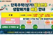 전국연합뉴스 유근택 기자 | 원주시는 설 연휴 동안 생활폐기물로 인한 시민 불편을 최소화하고 쾌적한 명절 분위기를 조성하기 위해 ‘설 연휴 생활폐기물 관리 대책’을 선제적으로 추진한다. 연휴 기간인 2월 14일부터 18일까지는 ‘생활폐기물 대책 상황반’과 청소 대행업체 19개 반, 53명으로 구성된 ‘기동처리반’이 가동된다. 이들은 무실동 롯데시네마, 단계동 장미공원길, 중앙시장 등 폐기물 적체가 예상되는 주요 거점을 순찰하고 관련 민원을 신속히 처리할 계획이다. 일요일인 2월 15일과 설 당일인 17일, 설 다음 날인 18일은 수거하지 않으므로, 단독주택과 상가 지역은 2월 15일과 18일 일몰 후에 배출하면 된다. 장성미 자원순환과장은 “연휴 기간 생활폐기물 수거 일정을 참고하셔서 깨끗한 원주시를 함께 만들어 주시길 바란다”라고 말했다.
