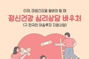 전국연합뉴스 유근택 기자 | 원주시는 우울·불안 등 정서적 어려움이 있는 시민들이 심리 상담 서비스를 받을 수 있도록 ‘2026년 정신건강 심리상담 바우처사업’ 이용자를 모집한다. 지원 대상은 ▲정신건강복지센터, 대학교상담센터, 청소년상담복지센터, Wee센터, 근로자건강센터 등에서 사전심리검사 후 의뢰서를 발급받은 자 ▲정신의료기관 등에서 우울·불안 등으로 인하여 심리 상담이 필요하다고 인정하는 자 ▲국가 정신건강검진 결과에서 중간 정도 이상의 우울이 확인된 자 ▲자립준비청년 및 보호연장아동 ▲재난피해자 등이다. 의뢰서, 소견서 등 구비서류를 갖춰 주소지 행정복지센터를 방문하거나 복지로 홈페이지를 통해 온라인으로 신청하면 된다. 대상자로 선정되면 전문 상담 제공기관을 선택해 대화 기반의 전문 심리 상담 서비스를 총 8회 지원받을 수 있으며, 본인부담금은 소득수준에 따라 차등 부과된다. 원주시 관계자는 “이번 사업을 통해 시민들이 정서적 어려움을 조기에 돌보고 전문적인 상담을 받을 수 있길 바란다”라며, “앞으로도 시민의 마음 건강을 위한 지원을 이어가겠다”라고 말했다.