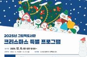 전국연합뉴스 유근택 기자 | 원주시 그림책도서관은 오는 16일부터 21일까지 녩년 크리스마스 특별 프로그램’을 운영한다. 주요 프로그램은 도서관에서 크리스마스 추억을 남길 수 있는 ‘크리스마스 한 컷! 영수증 사진관’과 도서 3권 이상 대출 시 크리스마스 키링을 증정하는 ‘도서관에 온 산타’등이다. 또한 ▲크리스마스 떡 케이크 만들기 ▲크리스마스 펜타곤 코스터 만들기(목공예) ▲크리스마스 석고 방향제·포켓 향수 만들기 ▲생화 크리스마스 리스 만들기 등 다양한 체험 프로그램도 운영된다. 이훈주 도서관장은 “지역 주민이 도서관에서 따뜻한 연말을 보내길 바라는 마음으로 이번 행사를 준비했다”라며, “그림책을 매개로 한 다양한 체험이 시민들에게 오래 기억되는 추억이 되길 바란다”라고 말했다.