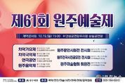 전국연합뉴스 유근택 기자 | (사)원주예총은 오는 10월 16일부터 11월 2일까지 원주시 댄싱공연장 주차장 상설공연장과 치악예술관 전시실 등 원주 전역에서 시민과 함께하는 ‘제61회 원주예술제’를 개최한다. 올해로 61회를 맞이한 원주예술제는 지역 예술인들의 창작열과 예술혼이 어우러진 종합 예술축제로, 예술로 하나 되는 시민 화합의 장이자 원주의 대표 문화예술 축제로 자리매김하고 있다. 축제 기간 동안 원주예총 산하 7개 협회가 참여하여 사진, 미술, 문인, 연극, 국악, 음악 등 다채로운 전시와 공연을 선보이며, 원주의 가을을 풍성한 예술의 향기로 물들일 예정이다. 특히 개막식에서는 국악협회 공연을 시작으로 시낭송, 바이올린 연주, 대금과 발레, 전통·현대무용, 금관5중주, 퓨전국악팀 ‘작심’의 무대까지 다채로운 프로그램이 이어진다. 마지막 순서로는 출연자와 관객이 함께 노래를 부르며 예술로 하나 되는 특별한 순간을 선사할 예정이다. 박혜순 문화예술과장은 “61년의 역사와 전통을 이어온 원주예술제는 예술인과 시민이 함께 만들어가는 축제이자, 원주의 문화적 저력을 보여주는 상징적인 행사”라며, “