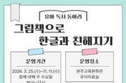 전국연합뉴스 유근택 기자 | 원주교육문화관은 유아들이 그림책을 통해 한글과 자연스럽게 친해질 수 있도록 유아 독서 동아리 ‘그림책으로 한글과 친해지기’를 운영한다. 유아 독서 동아리 ‘그림책으로 한글과 친해지기’는 3월 25일부터 둘째 주, 넷째 주 수요일 16시~17시에 진행되는 독서 동아리로, 그림책을 함께 읽고 글쓰기, 만들기, 그림 그리기 등 다양한 독후활동을 통해 책에 대한 흥미를 높일 수 있도록 구성됐다. 운영대상은 6세 유아 5명이며, 프로그램 신청은 3월 3일 오전 10시부터 원주교육문화관 누리집에서 선착순으로 접수한다. ‘그림책으로 한글과 친해지기’는 3월 25일부터 11월 11일까지(7~8월 제외) 총 12회 운영된다.