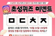 전국연합뉴스 유근택 기자 | 원주시는 10월 13일부터 26일까지 공식 인스타그램에서 초성퀴즈 이벤트를 실시한다. 시는 앞서 두 차례의 SNS 활성화 이벤트를 진행했으며, 올해 마지막인 세 번째 행사로 인스타그램 초성퀴즈를 준비했다. 이번 초성퀴즈 제시어는 ‘ㅁㄷㅊㅈ’이며, 문제는 10월 24일부터 26일까지 3일간 원주 중앙동 전통시장 일원에서 열리는 축제의 이름이다. 이벤트에 참여하려면 원주시 공식 인스타그램을 팔로우한 뒤, 퀴즈 정답과 팔로우 인증 사진을 이벤트 참여 페이지(네이버 폼)에 입력·제출하면 된다. 기존 구독자를 포함해 전 국민 누구나 참여할 수 있다. 추첨을 통해 총 100명에게 치킨세트(3명)와 커피(97명) 쿠폰이 지급된다. 이벤트 당첨자는 10월 31일 발표되며, 경품은 11월 4일 발송될 예정이다. 자세한 내용은 원주시 공식 SNS(인스타그램, 페이스북, 블로그), 홈페이지, 전광판 등에서 확인할 수 있다. 한편 원주시 공식 인스타그램은 현재 31,779명의 팔로워를 보유하고 있으며, 유익한 시정 소식과 함께 주요 행사, 축제 등 다양한 볼거리와 즐길 거리를 숏