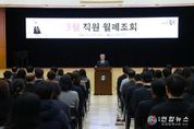 전국연합뉴스 이동수 기자 | 충북 괴산군은 3일 군청 대회의실에서 3월 직원조회를 열고 민생안정지원금 신청률 98.4% 달성에 따른 직원들의 노고를 격려하고 봄철 주요 현안업무에 전 행정력을 집중해 줄 것을 당부했다. 송 군수는 “민생안정지원금 신청이 98.4%까지 원활히 마무리된 것은 현장에서 최선을 다해 준 직원 여러분의 노력 덕분”이라며 “군민 한 분도 소외되지 않도록 끝까지 세심하게 살펴 달라”고 말했다. 이어, 3월은 연중 가장 바쁜 시기임을 강조하며 △봄철 산불 예방 및 대응체계 강화 △상반기 신속집행 적극 추진 △2027년 정부예산 확보 전략적 대응 △해빙기 사업장 안전점검 철저 △각종 공사 조기 발주 및 속도감 있는 추진 등을 핵심 과제로 제시했다. 또한, 건조한 날씨로 산불 예방의 선제 대응을 주문했으며 해빙기 안전사고 예방을 위한 사업장 점검과 공사 현장 관리에 만전을 기해 줄 것을 강조했다. 특히, 지역경제 활성화를 위한 상반기 신속집행과 2027년도 정부예산 확보를 위한 중앙부처 대응 등 사전 절차 이행에 전 부서가 힘을 모아 줄 것을 당부했다. 다가오는 6월 3일