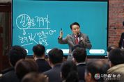 전국연합뉴스 이동수 기자 | 김영환 충북지사가 2일 도청 대회의실에서 민선8기 “바다가 없는 충북의 지리적 결핍을 대한민국 중심이라는 자긍심으로 바꿔낸 것이 도정의 가장 큰 성과”라고 강조하며, 본질을 꿰뚫는 ‘안목’과 ‘통찰’의 행정을 주문했다. 김 지사는 ‘길목을 지키자’라는 주제의 발언을 통해 “안목은 중요한 것을 가려내는 눈이고, 통찰은 본질을 꿰뚫는 힘”이라며, “민선8기 충북은 백두대간에 막히고 바다가 없다는 지리적 한계를 오히려 ‘대한민국의 길목’이라는 기회로 재해석해 왔다”고 서두를 뗐다. 김 지사는 충북이 거둔 눈부신 성과들을 통찰의 산물로 평가하며 “출산 증가율 전국 1위, 일자리 및 투자유치 활성화, GRDP 성장률 등 주요 지표에서 전국 최상위권의 성적을 거둔 것은 산과 강으로 갈라진 악조건을 ‘대한민국의 중심’이라는 새로운 가치로 창조해냈기 때문”이라며 직원들의 노고를 격려했다. 이어 김 지사는 AI 시대를 대비하는 충북만의 차별화된 전략으로 ‘바이오필릭(Biophilic·생태감수성)’을 제시하면서 “로봇이 노동을 대체할 수록 인간은 본능적으로 자연을 찾게 될 것이고, 충북의 자연정원과