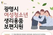 전국연합뉴스 조민준 기자 | 광명시가 4일부터 청소년의 건강권과 인권 보장을 위해 ‘여성청소년 생리용품 보편지원 사업’ 신청을 받는다. 지원 대상은 광명시에 주민등록을 둔 11세부터 18세까지(2008. 1. 1.~2015. 12. 31. 출생) 여성청소년이며, 등록외국인과 국내거소신고자도 포함한다. 지원금은 1인당 월 1만 4천 원, 연 최대 16만 8천 원으로, 오는 4월 20일부터 광명사랑화폐 생리용품 전용 모바일 카드로 지급할 예정이다. 지원금은 올해 12월 31일까지 사용할 수 있으며, 기한 내 사용하지 않은 금액은 소멸한다. 단, 2026년 1월 이후 전입자는 전입 시기에 따라 지원 금액이 달라질 수 있다. 생리용품은 광명시 내 씨유(CU), 지에스(GS)25, 세븐일레븐, 이마트24 등 지역화폐 가맹 편의점에서 구매할 수 있고, 배달특급 앱과 연계된 온라인 쇼핑몰에서도 이용 가능하다. 신청은 3월 5일부터 3월 31일까지 ‘경기민원24’에서 온라인으로 하거나, 3월 4일부터 11월 13일까지 주소지 관할 동 행정복지센터를 방문하면 된다. 예산 소진 시 조기 마감할 수 있다.