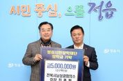 전국연합뉴스 최성용 기자 | 전북서남상공회의소 최종필 회장((유)신정주포장 대표)이 지난 28일 정읍시청을 방문해 (재)정읍시민장학재단에 장학금 500만원을 기탁했다. 북면에 소재한 (유)신정주포장의 대표인 최 회장은 지역 산업 발전과 더불어 인재 양성에도 깊은 관심을 가져왔다. 그는 지난 2008년부터 매년 꾸준히 장학금을 기탁하며 올해까지 총 6300만 원을 전달해 지역사회 나눔을 실천하고 있다. 최종필 회장은 “기업이 성장할 수 있었던 것은 지역사회의 든든한 뒷받침 덕분”이라며 “앞으로도 지역의 학생들이 꿈을 펼칠 수 있도록 지속적인 관심과 응원을 이어가겠다”고 전했다. 이학수 시장은 “지역인재 양성을 위해 최종필 회장님의 지속적인 관심과 나눔에 깊이 감사드린다”며 “기탁하신 장학금은 정읍의 미래를 이끌 인재를 키우는 밑거름으로 소중히 활용하겠다”고 말했다.