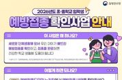 전국연합뉴스 최성용 기자 | 익산시는 학생들의 감염병 예방과 건강한 학교생활을 위해 '2026년도 초·중학교 입학생 예방접종 확인사업'을 오는 5월 29일까지 추진한다고 15일 밝혔다. 초·중학교 입학은 단체생활이 시작되는 시기로, 예방접종 완료 여부 확인은 감염병 확산을 예방하는 가장 기본적인 조치다. 이에 시는 입학생을 대상으로 필수 예방접종 여부를 사전에 점검하고, 미접종자에 대한 접종을 적극 안내하고 있다. 보호자는 '예방접종도우미 누리집'을 통해 자녀의 접종 내역을 간편하게 확인할 수 있으며, 접종이 필요한 경우 가까운 위탁의료기관이나 보건소에서 무료로 예방접종을 받을 수 있다. 확인 대상은 초등학생의 경우 △DTaP 5차(디프테리아·파상풍·백일해) △IPV(폴리오) 4차(소아마비) △MMR 2차(홍역·볼거리·풍진) △일본뇌염이다. 중학생은 △디프테리아·파상풍·백일해(Tdap) 6차 △일본뇌염 △HPV 1차(여학생 대상) 등이다. 이미 접종을 완료했음에도 확인되지 않을 경우에는 접종기관 또는 보건소에 전산등록을 요청해야 하며, 해외 접종자는 접종증명서를 지참해 보건소 방문 후 등록이 가