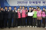 전국연합뉴스 기자 | 전라남도교육청과 전국학교비정규직연대회의가 15일 교육 현장의 노사 상생을 통한 교육 공무직원의 권익 신장과 근로 여건 개선을 골자로 한 ‘2025년 단체협약’을 체결했다. 이날 전남교육청에서 열린 체결식에는 김대중 전남교육감과 연대회의(참여노조: 전국학교비정규직노동조합, 공공운수노동조합 전국교육공무직본부, 전국여성노동조합) 각 노조 대표자를 포함한 양측 관계자 30여 명이 참석해 협약서에 서명하며 상호 발전을 약속했다. 본문 118개 조, 직종별 37개 조, 부칙 7개 조 등 총 159개 조로 구성된 이번 단체협약은 교육공무직의 근로 여건 개선과 노동강도 경감 등 근로 환경을 획기적으로 개선하는 내용을 담고 있다. ▶복지 향상 및 휴가 확대 질병으로 인한 유급병가 기간을 기존 30일에서 60일로 두 배 확대하여 공무원과 동일하게 반영함으로써 교육공무직들의 건강권이 강화됐다. 또한, 장기재직휴가가 신설되어 10년 ~ 20년 미만 5일, 20년 이상 10일의 유급 휴가를 사용할 수 있게 됐다. ▶출산, 육아 지원 강화 배우자 출산휴가가 5일에