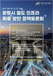 전국연합뉴스 조민준 기자 | 광명시는 미래 철도도시로 도약하기 위한 핵심 전략을 논의한다. 시는 오는 15일 오후 3시 시청 대회의실에서 ‘광명시 철도 인프라 확충방안 정책 토론회’를 개최한다. 이번 토론회는 신천–하안–신림선 추진 현황을 비롯해 광명시의 철도 접근성 진단, 철도 음영지역 개선 방향, KTX광명역의 미래 역할 등 광명시 철도 정책의 주요 과제를 종합적으로 점검하기 위해 마련했다. 토론회에서는 세 건의 주제 발제가 이어진다. 먼저 박승원 광명시장이 신천–하안–신림선 등 주요 사업의 추진 현황과 향후 계획을 설명하고, 이어 전교석 아주대 연구교수가 광명시 철도 음영지역 진단과 철도망 발전 구상을 제시한다. 마지막으로 나희승 전 코레일 사장은 유라시아 평화철도 구상 속에서 KTX광명역이 나아가야 할 미래적 역할을 발제한다. 발제 후에는 유정훈 대한교통학회장(아주대 교수)을 좌장으로, 각 분야 전문가가 참여하는 패널 토론과 질의응답이 이어진다. 시민들은 별도의 신청 없이 현장을 방문해 발제와 토론을 청취하고 질의할 수 있다. 시는 이번 토론회에서 제시된 전문가 의견