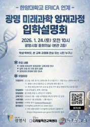 전국연합뉴스 조민준 기자 | 광명시가 과학에 흥미와 잠재력을 지닌 초등학생을 대상으로 한양대학교 에리카(ERICA)와 연계한 ‘광명 미래과학 영재과정’을 운영한다고 19일 밝혔다. ‘광명 미래과학 영재과정’은 한양대 에리카 교수진이 직접 참여해 수업을 운영하는 기초과학(물리, 화학, 생명 등) 심화 교육과정으로, 대학의 전문성과 공공 영재교육이 결합한 광명시 대표 미래인재 양성 프로그램이다. ▲관내 초등학교 5·6학년 재학생 ▲관내 대안교육기관 소속이거나 관내 거주 중인 동일 연령대 학교 밖 청소년을 대상으로 총 30명(학년별 15명)을 선발해 오는 3월부터 8월까지 주말(월 2회)과 방학 기간에 프로그램을 운영할 계획이다. 교육은 실험·탐구·토론 중심으로 구성해 학생들이 과학 개념에 대해 스스로 질문하고 사고하며 해답을 찾아가는 과정을 경험하도록 설계했다. 이를 통해 창의적 사고력과 문제해결 능력을 자연스럽게 기를 수 있도록 한다. 시는 본격적인 프로그램 운영에 앞서 1월 24일 오전 10시 광명시청 본관 2층 중회의실에서 입학설명회를 개최한다. 프로그램에 관심이 있는 학생과 학부모, 시민 누구나