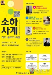 전국연합뉴스 조민준 기자 | 광명시 소하도서관이 오는 25일부터 전문 작가와 함께하는 글쓰기 강좌 ‘소하사계’ 봄 특강 참여자를 모집한다. ‘소하사계’는 4월부터 12월까지 계절별로 시 창작, 에세이 쓰기 등 다양한 주제로 진행하는 글쓰기 강좌다. 현직 전문 작가가 강의를 맡으며, 각 강좌는 4주 과정으로 구성한다. 특히 과정별로 10명 내외의 소수 정예 인원을 모집해 참가자들이 작가로부터 직접 세밀한 첨삭 지도를 받을 수 있도록 구성한 것이 특징이다. 이번 봄 강좌(4월)는 고수리 작가가 ‘마음을 쓰는 에세이’를 주제로 에세이의 기본 작법을 강의하며, 오는 4월 3일부터 4주간 운영한다. 이어지는 계절별 강좌로는 ▲6월(여름) 엄지혜 작가의 ‘에세이 쓰기’ ▲8월(가을) 황인찬 시인의 ‘시 입문’ ▲11월(겨울) 최백규 시인의 ‘시와 문학’이 차례로 시민들을 만날 예정이다. 광명시도서관 정회원(성인)이면 누구나 신청할 수 있으며, 참여를 원하는 시민은 오는 25일부터 광명시도서관 누리집에서 선착순으로 접수하면 된다. 여름·가을·겨울 강좌는 개별 시기에 맞춰 순차적으로 신청