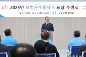 전국연합뉴스 김태연 기자 | 구로구는 21일 구청 창의홀에서 2025년 모범운수종사자 표창을 수여했다. 구는 모범 운수종사자를 발굴해 표창함으로써 운수종사자의 직업적 사명감을 높이고 이용객에 대한 교통서비스 증진에 이바지하고자 수여식을 마련했다. 표창 대상은 1년 이상 버스, 택시, 화물 등 운수업에 종사하면서 대중교통 질서 확립과 선진교통문화 정착에 노력하거나 타의 모범이 된 자이다. 구는 지난달 버스 회사, 서울용달협회 등 운수업 관련 기관으로부터 모범 운수종사자를 추천받아 결격사유 확인 후, 공적심사를 의뢰해 최종 표창 대상자를 선정하게 됐다. 마을버스 운수종사자 3명, 개인택시 운수종사자 19명, 구로모범운전자회 7명, 화물 운수종사자 6명 등 총 35명이다. 이날 수여식에는 장인홍 구청장을 비롯해 운수업체 관계자 등이 참석해 모범 운수종사자 표창을 축하했다. 구로구 관계자는 “여러분이 구민의 발이 되어 묵묵히 최선을 다해주신 덕분에 구민들이 안전하고 편리한 교통생활을 누릴 수 있었다”며, “앞으로도 지속적으로 운수업계와 소통하며 더 나은 교통문화를 정착하도록 노력하