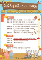 전국연합뉴스 조민준 기자 | 광명시 보건소는 지역 어르신들의 건강한 노후를 지원하기 위해 ‘2025년 제3기 어르신 신체활동 프로그램’을 오는 20일부터 23일까지 4일간 모집한다. 이번 프로그램은 11월 3일부터 12월 12일까지 6주간 운영하며, 매주 월·수·금요일 총 18회로 진행한다. 걷기 프로그램은 오전 10시부터 10시 50분까지, 근력·균형운동은 11시부터 11시 50분까지 운영한다. 단, 첫날과 마지막 날은 체력 측정을 위해 운동 프로그램을 진행하지 않는다. 참여 대상은 2025년 기준 만 65세 이상(1960년 이전 출생자) 광명시민이다. 참여를 희망하는 시민은 10월 20일부터 23일까지 광명시보건소 건강위생과 건강증진팀에 유선으로 신청하면 된다. 운영 장소는 광명시보건소 1층 대회의실(오리로 613, 하안동)과 인근 실외 공간이며, 쾌적하고 안전한 운동 환경을 제공할 예정이다. 한편, 제3기부터는 출석률이 70% 미만일 경우 다음 기수 참여가 제한될 수 있다. 이에 따라 꾸준한 참여가 권장된다. 나기효 건강위생과장은 “어르신들의 일상 속 신체활동 증진은