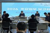 전국연합뉴스 김용태 기자 | 아산시가 2026년 시정 운영을 앞두고 중장기 발전 전략과 핵심 과제를 점검하며 실행 중심의 시정 운영에 시동을 걸었다. 시는 20일 시청 상황실에서 ‘2026년 주요업무 보고회’를 열고, 새해 시정 운영 방향과 중장기 발전 전략, 주요 사업의 추진 로드맵을 종합적으로 점검했다. 오세현 시장이 직접 주재한 이날 보고회는 각 국·소별 비전과 중장기 발전 실천 계획을 중심으로 주요 사업의 추진 방향과 우선순위를 살피는 데 초점을 맞췄다. 특히 기존에 단위 사업을 나열식으로 보고하는 방식에서 벗어나 토론 중심으로 진행, 각 국·소의 소관 사업은 물론 타 부서의 중점 과제까지 공유하는 방식으로 운영됐다. 이를 통해 부서 간 이해를 높이고, 시정 전반의 방향성과 정책 연계성을 강화하는 데 비중을 뒀다. 국·소별 주요 비전을 보면 △지속 가능한 산업·경제 기반 구축 △안전으로 신뢰받고 AI 혁신으로 든든해지는 행정 구현 △K-컬처로 도약하는 문화·체육·관광도시 조성 △시민 체감 중심의 따뜻하고 그늘 없는 복지도시 조성 △사람과 자연이 공존하는 탄소중립 녹색도시 구현 △지속 가능한
