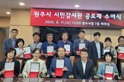 전국연합뉴스 유근택 기자 | 원주시는 지난 17일 시청 7층 회의실에서 시민감사관 공로패 수여식을 개최했다. 시는 투명하고 깨끗한 행정을 위해 헌신적이고 적극적으로 활동한 제5기 시민감사관 22명에게 공로패를 수여했다. 원주시 시민감사관 제도는 2015년부터 운영됐으며, 이를 통해 시정의 감시 기능을 강화하고 민생 현장의 불편을 신속히 해결해 왔다. 특히 시민감사관은 시정에 대한 독립적인 감사를 통해 주민들의 고충을 해결하고 시정의 투명성을 높이는 데 중요한 역할을 했다. 김문기 원주부시장은 “시민들의 목소리를 가까이에서 경청하고 불편을 해결하는 데 헌신하신 노고에 깊이 감사드린다”라며, “앞으로도 원주시 발전에 이바지해 주시길 부탁드린다”라고 말했다.