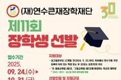 전국연합뉴스 박우배 기자 | (재)연수큰재장학재단은 미래 지역사회를 이끌어 갈 우수 인재 발굴과 양성을 위해 제11회 장학생을 선발한다. 이번 장학생은 ▲복지, ▲특기(개인), ▲특기(단체), ▲연수꿈응원, ▲학업우수, ▲연수큰재(다년간) 등 총 6개 분야에서 지원자를 모집하며, 지원 규모는 약 1억 8천만 원에 달한다. 특히 올해는 장학생 지원 기준을 개선하고 추천권자를 조정하는 등 예년에 비해 보다 폭넓은 학생들에게 기회를 제공하는 방향으로 개편됐다. 선발 절차는 ▲공고 및 접수(9월 24일~10월 31일), ▲서류심사, ▲연수큰재(다년간) 면접 심사 및 선발 심의위원회 심의, ▲재단 이사회 최종 확정 순으로 진행된다. 선발 결과는 11월 말에 발표할 예정으로 자세한 사항은 연수구청 누리집 공고문을 통해 확인할 수 있다. 이재호 연수구청장은 “연수큰재장학재단은 미래 꿈나무들이 자신의 꿈을 마음껏 펼칠 수 있도록 지원하고 있다.”라며 “앞으로도 내실 있는 다양한 장학사업을 통해 교육 기회의 균등과 인재 양성에 최선을 다하겠다.”라고 말했다.