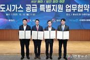 전국연합뉴스 김용태 기자 | 당진시는 13일 충남도청 대회의실에서 충청남도, 미래앤서해에너지와 함께 도시가스 공급 특별지원 업무협약(MOU)을 체결했다고 밝혔다. 협약식에는 오성환 당진시장을 비롯해 김태흠 충남도지사, 이완섭 서산시장, 송민섭 미래엔서해에너지 대표가 참석했다. 이번 협약은 도시가스 공급 취약지역 주민의 에너지 복지 실현과 지역 간 에너지 격차 해소를 위해 행정, 기업과 지역사회가 함께 만들어낸 협력의 결과로, 협약에 따라 ▲정미·채운 지역 도시가스 배관 설치를 위한 특별지원금 확보 ▲2027년까지 배관 공사 완료 등이 추진될 예정이다. 정미면과 채운동에는 각각 2.89km, 2.8km의 도시가스 배관이 설치돼 정미면 126세대, 채운동 82세대가 혜택을 보게 된다. 현재 당진시 도시가스 보급률은 93%로 도내에서도 높은 수준이지만, 정미면은 보급이 전혀 없어 에너지 복지의 실질적 사각지대로 꼽혔다. 채운1통 역시 인근 아파트까지는 예전부터 도시가스가 공급됐으나 나머지 지역은 경제성 문제로 제외돼 주민들의 상실감과 소외감이 컸다. 시는 이번 협약으로 주민들의