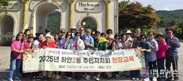 전국연합뉴스 조민준 기자 | 광명시 하안2동 주민자치회는 지난 25일 주민자치위원 역량 강화를 위한 2025년 현장교육으로 경기도 포천시에 위치한 포천 아트밸리와 허브아일랜드를 방문했다. 이번 현장교육은 위원들이 직접 다양한 지역 자원을 체험하며, 하안2동의 특성에 맞는 마을사업 아이디어를 구상하는 실질적인 벤치마킹의 기회로 마련됐다. 먼저 방문한 포천 아트밸리는 과거 폐채석장이었던 공간을 자연과 예술이 조화를 이루는 복합문화공간으로 재탄생시킨 대표 사례다. 주민자치위원들은 아트밸리 조성 과정과 운영 방식을 둘러보며 지역 자원의 효과적인 활용 방안에 대해 살펴봤다. 이어 방문한 허브아일랜드에서는 다양한 허브 식물이 전시된 공간과 테마정원을 관람하고, 허브를 활용한 체험 프로그램에도 직접 참여했다. 위원들은 자연친화적이고 감각적인 공간 구성에서 착안해 하안2동에 적용할 수 있는 체험형 주민참여 사업 방향을 논의했다. 이중호 회장은 “이번 현장교육은 타 지역의 성공 사례를 직접 보고 느낄 수 있었던 값진 시간이었다”며 “앞으로도 주민의 삶의 질을 높일 수 있는 맞춤형 마을사업을 꾸준히 구상하고 추진해
