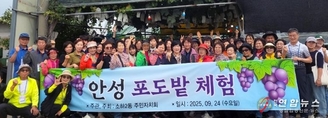 전국연합뉴스 조민준 기자 | 광명시 소하2동 주민자치회는 지난 24일 주민 70여 명과 함께 경기도 안성 포도밭과 평택 농업생태원을 방문하는 ‘안성 포도밭 체험’ 행사를 진행했다. 이번 체험은 도심을 벗어나 자연 속에서 계절의 정취를 느끼며 주민들에게 휴식과 힐링의 시간을 제공하기 위해 마련했다. 주민들은 포도 수확 체험으로 농촌의 소중한 가치를 직접 느끼고, 이어 평택 농업생태원에서 다양한 식물을 살펴보며 환경의 중요성을 체험하는 의미 있는 시간을 가졌다. 부영녀 회장은 “주민들이 함께 어울리며 즐겁고 유익한 시간을 보낼 수 있어 뜻깊었다”며 “앞으로도 주민 화합과 건강한 공동체를 위한 다양한 프로그램을 이어가겠다”고 말했다. 한편, 소하2동 주민자치회는 오는 10월 갯벌 체험과 11월 사과농장 체험을 준비하고 있으며, 앞으로도 계절에 맞춘 다양한 체험 프로그램으로 주민들에게 풍성한 경험을 제공할 계획이다.
