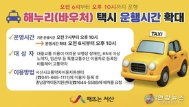 서산시, 해누리(바우처) 택시 운행시간 확대