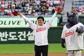 박용철 강화군수, SSG 랜더스 홈경기 시구… 국립강화고려박물관 염원 담아 “등번호 800”