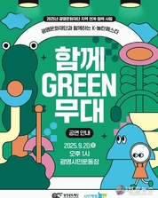 전국연합뉴스 조민준 기자 | (재)광명문화재단은 오는 9월 20일 오후 1시부터 광명시민운동장에서 '광명문화재단과 함께하는 K-놀탄페스타 : 함께 GREEN 무대'를 개최한다. 이번 공연은 2025년 광명문화재단 지역 내 연계·협력 사업의 일환으로, 지역 환경축제 ‘K-놀탄페스타’와 협력해 시민들에게 탄소중립의 가치를 알리고 문화 향유 기회를 확대하기 위해 마련됐다. ‘환경’을 주제로 마임, 뮤지컬, 국악, 재즈 등 다양한 장르의 공연을 선보여 시민들에게 색다른 문화적 경험을 선사할 예정이다. '광명문화재단과 함께하는 K-놀탄페스타 : 함께 GREEN 무대'는 K-놀탄페스타를 방문하는 누구나 관람할 수 있으며, 공연팀과 시간표 등 자세한 사항은 광명문화재단 누리집에서 확인할 수 있다.
