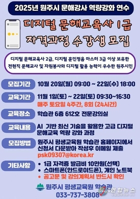 원주시 학습관, 2025년 문해강사 역량강좌 연수 실시