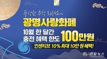 전국연합뉴스 조민준 기자 | 광명시가 ‘광명사랑화폐(지역화폐)’ 충전 한도를 10월에도 100만 원으로 상향한다고 9일 밝혔다. 100만 원을 충전하면 인센티브 10%가 추가돼 총 110만 원을 사용할 수 있다. 시는 지난 7월 인센티브 지급 한도를 당초 30만 원에서 70만 원으로 대폭 확대한 데 이어 9월에는 100만 원으로 추가 확대했고, 추석 명절이 있는 10월에도 지역 소비 진작을 위해 혜택을 이어간다. 두 달 연속 충전 한도를 100만 원으로 확대한 것은 2019년 광명사랑화폐 발행 이후 이번이 처음이다. 이는 정부의 지역화폐 확대 기조에 발맞춰 민생회복과 지역경제 활성화에 총력을 기울이고자 하는 의지를 보여준다. 8월 기준 2025년 광명사랑화폐 발행액은 총 1천854억 원으로, 당초 목표였던 1천200억 원의 155%를 넘어섰다. 이에 만족하지 않고 시는 연말까지 당초 발행 목표의 4배인 5천억 원 발행을 목표로 확대 발행을 이어간다. 사용액의 일정 비율을 돌려주는 ‘캐시백’ 등 지역화폐 소비 촉진 정책 도입도 추가로 검토하고 있다. 박승원 광명시장은 “광명사