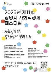 전국연합뉴스 조민준 기자 | 광명시가 사회적경제를 즐겁게 이해하고, 가치 있는 소비를 실천할 수 있는 축제 한마당을 펼친다. 시는 13일 오후 광명시민운동장에서 ‘사회적 가치, 광명에서 꽃피우다!’를 주제로 ‘제11회 광명시 사회적경제 페스티벌’을 개최한다. 이날 ▲사회적경제 팝업스토어 ‘빛나는 편의점’ ▲사회적경제 나눔장터 ▲시민 참여 이벤트 ▲판매·체험·홍보존 ▲달풍선 포토존 등 총 40여 개 부스를 마련해 다양한 사회적경제 제품과 서비스를 직접 보고, 맛보고, 체험할 수 있다. 무대 공연으로는 ▲광명시 청소년연희단 ‘우리랑’ ▲‘붐비트’ 브라스밴드 ▲마임이스트 ‘마트 쇼(MArt SHOW)’ ▲댄스 아카데미 라이트하우스 ▲초보 목수와 함께하는 목각인형극 ▲국악과 이디엠(EDM)이 어우러진 ‘만월프로젝트’ 등 지역 예술인들의 다채로운 공연이 이어져 축제 분위기를 더한다. 또한 청소년 사회적경제 인식 확산을 위해 마련한 ‘청소년 사회적경제 아이디어 대회’가 함께 열린다. 지난 7월 진행된 ‘소셜플레이 캠프’에 참여한 청소년 40여 명이 ‘스몸비족(스마트폰과 좀비의 합성어)’, 흡연 중