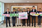 전국연합뉴스 김삿갓 기자 | 영주시는 지난 10일 영주농협(조합장 남정순)과 상주농협(조합장 강동구)이 고향사랑 기부금 상호기부에 동참했다고 밝혔다. 이날 열린 기부 약정식에는 유정근 영주시장 권한대행과 남정순 영주농협 조합장, 김기환 상주농협 상임이사를 비롯한 관계자 등 7명이 참석했다. 이 자리에서 상주농협은 영주시에 700만 원을, 영주농협은 상주시에 1,000만 원을 기부하며 지역 발전을 응원하는 뜻을 나눴다. 남정순 영주농협 조합장은 “이번 상호 기부로 지역 경제 발전에 이바지하게 되어 기쁘다”며 “앞으로도 고향사랑기부제 활성화를 통해 지역 농축산물 소비가 확대될 수 있도록 적극 협조하겠다”고 말했다. 유정근 영주시장 권한대행은 “남정순 영주농협 조합장님과 강동구 상주농협 조합장님을 비롯한 임직원들께서 상호 기부를 통해 따뜻한 마음을 나눠주셔서 진심으로 감사드린다”며 “보내주신 기부금은 영주시 발전을 위해 소중히 활용하겠다”고 밝혔다. 한편 영주시는 고향사랑기부제 민간 플랫폼 ‘위기브’와 숙박·여행 플랫폼 ‘여기어때’와 함께 8월 20일부터 10월 30일까지 제휴 이벤트를 진행한다. 비수도