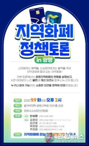 전국연합뉴스 조민준 기자 | 광명지역화폐의 현황과 개선 방향을 두고 시민과 소상공인이 함께 머리를 맞대는 정책토론회가 열린다. 오는 9월 9일 오후 2시, 폴리텍대학 광명교육원 지하1층 강당에서 개최되는 '지역화폐 정책토론 in 광명'이 그 무대다. 이번 토론회는 광명시소상공인연합회가 주최하고, 안성환 시의원이 직접 좌장을 맡아 진행한다. 현장에서 지역화폐를 사용하며 느낀 불편과 아쉬움을 시민과 소상공인들이 허심탄회하게 나누고, 실질적인 개선책을 모색하는 것이 목표다. 특히 토론에는 ▲김정미 광명시의회 의원(복지문화건설위원회) ▲김건호 경기연구원 연구위원 ▲박재철 광명시소상공인연합회 이사장 ▲주미화 광명교육희망네트워크 대표 등이 패널로 함께한다. 지역 현장과 정책, 학계의 목소리를 아우르는 만큼, 다양한 시각에서 심도 있는 논의가 기대된다. 광명지역화폐는 지역 상권을 살리고 골목경제에 활력을 불어넣는 중요한 제도다. 하지만 일부 시민과 상인들은 사용 과정에서 불편을 겪거나 운영상 아쉬움을 지적해왔다. 주최 측은 이번 토론회가 이러한 목소리를 모아 실질적이고 현실적인 개선책을 마련하는 계기가 되기를