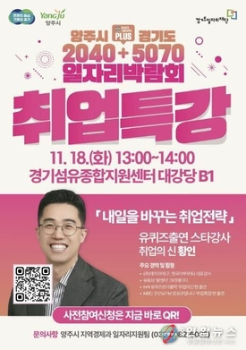 "취업의 신이 양주에 온다" tvN '유 퀴즈' 황인 강사, 18일 양주시서 특별 강연