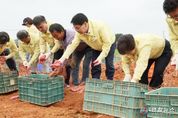 전국연합뉴스 최성용 기자 | 심덕섭 고창군수는 8일 공음면 건동리 일원 1만6528㎡(약 5000평) 규모의 고구마 수확 현장을 방문해 생산 농가를 격려하고 애로사항을 청취했다. 이날 방문에는 심덕섭 고창군수, 조민규 고창군의회 군의장 및 군의원, 농업분야 관계 공무원, 고구마 재배농가, 당산마을 주민 등 30여 명이 함께했다. 고창군은 서늘한 해풍과 풍부한 일조량, 게르마늄과 미네랄이 풍부한 황토지대를 기반으로 고구마 재배에 최적의 조건을 갖춘 전북 최대의 명품 꿀고구마 산지다. 현재 약 600여 농가가 총 1400여㏊ 면적에서 고구마를 재배하고 있다. 김헌동 농가는 지난 4월6일부터 정식을 시작해 5월25일까지 약 70만 평 규모에 국내 인기 품종인 ‘호풍미’, ‘베니하루까’를 심었으며, 앞으로 약 5000톤 가량의 고구마를 수확할 계획이다. 수확된 고구마는 쿠팡, 롯데마트 등 전국 대형 유통채널에 납품될 계획이다. 고창 고구마의 우수한 품질은 이미 시장에서 입증되고 있다. 롯데웰푸드는 고창 고구마를 활용한 빈츠·마가렛트·카스타드·빵빠레·찰떡아이스 등 13종