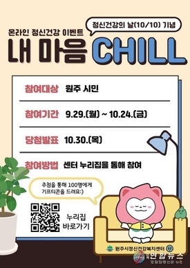 원주시정신건강복지센터, 온라인 정신건강 이벤트 '내 마음 칠(CHILL)' 진행