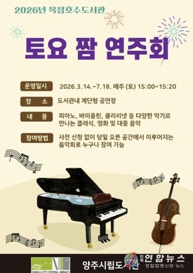 양주시 옥정호수도서관, 시민 위한 '토요 짬 연주회' 개최