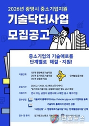 전국연합뉴스 조민준 기자 | 광명시가 관내 중소 제조기업의 기술 경쟁력 강화와 일자리 창출을 위해 ‘2026년 기술닥터 사업’ 참여 기업을 연중 수시 모집한다고 30일 밝혔다. 기술닥터 사업은 제품 개발과 공정 개선 과정에서 기술적 어려움을 겪는 기업을 위해 전문가가 직접 현장을 찾아 일대일 맞춤형 해결책을 제공하는 사업이다. 신청 기업은 전문가가 방문해 문제를 진단하는 ‘현장애로기술지원’, 4개월간 심도 있게 시제품 제작 등을 돕는 ‘중기애로기술지원’, 시험분석과 설계·시뮬레이션 등을 지원하는 ‘단계별 검증지원’ 등 체계적인 도움을 받을 수 있다. 특히 올해는 기업당 최대 5천만 원을 지원하는 ‘상용화 지원’ 단계를 신설해 지원 폭을 획기적으로 넓혔다. 해당 단계에서는 ▲상세 설계 ▲디자인 ▲시작금형 제작 ▲시험·분석 ▲마케팅 등 제품화부터 시장 진출까지 전 과정을 포괄적으로 지원한다. 사업 성과는 이미 객관적인 지표로 증명되고 있다. 시는 지난해 현장애로기술지원 22건, 중기애로기술지원 2건, 단계별 검증지원 3건 등 총 27건의 사업을 지원했다. 그 결과 참여 기업들은 2024년