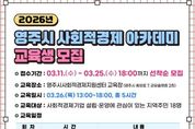 전국연합뉴스 김삿갓 기자 | 영주시와 영주시사회적경제지원센터는 신규 사회적경제기업 발굴 및 육성을 위해 '2026 영주시 사회적경제 아카데미' 교육생을 3월 11일부터 25일까지 모집한다. 이번 아카데미는 사회적경제기업 설립과 운영에 관심이 있는 지역 주민과 기관·단체를 대상으로 선착순 18명을 모집하며, 교육은 3월 26일 오후 1시부터 6시까지 총 5시간 과정으로 영주시사회적경제지원센터 교육장(영주시 중앙로 7, 2층)에서 진행된다. 교육은 사회적경제 분야 전문강사를 초빙해 △사회적경제의 이해 △사회적경제기업가 특강 △사회적기업/협동조합 설립 절차 등의 내용으로 진행된다. 또한, 교육 이후에는 신청자를 대상으로 사회적경제기업 설립을 위한 1:1 맞춤형 컨설팅을 제공하여 사회적경제기업 설립 전반을 체계적으로 지원할 예정이다. 아카데미 모집과 관련한 자세한 사항은 영주시사회적경제지원센터 홈페이지에서 확인할 수 있으며, 참여를 희망하는 경우 3월 25일까지 포스터 내 QR코드(네이버폼) 또는 유선 신청을 통해 접수하면 된다. 정교완 일자리경제과장은 “이번 아카데미가 사회적경제에 대한 이해