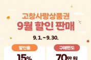 전국연합뉴스 최성용 기자 | 고창군이 9월부터 올 연말까지 고창사랑상품권의 상시 할인율을 기존 10%에서 15%로 상향해 할인판매를 추진한다고 28일 밝혔다. 이번 조치는 정부의 지역사랑상품권 2차 추가경정예산 기반의 국비지원과 민생회복 소비쿠폰 2차 지급, 고창군에서 지급하는 ‘고창 군민활력지원금’과 연계해 지역 내 소비 촉진과 소상공인 매출 증대를 통한 지역경제 활성화를 목표로 추진된다. 고창사랑상품권은 지류상품권, 고창사랑카드, 모바일(고향사랑페이) 형태로 판매되며, 1인당 월 구매한도는 총 70만원이다. 확대된 15% 할인율은 9월부터 적용되며, 구매시 10% 선할인에 고창사랑카드 결제시 5% 후캐시백이 추가로 지급된다. 또한, 지난 8월 22부터 고수, 아산(아산점, 선운사점), 무장, 공음, 상하, 해리, 성송, 성내, 부안 등 총 10개소의 하나로마트를 고창사랑상품권 사용처로 등록하여, 면 지역 군민도 보다 편리하게 상품권을 이용할 수 있게 됐다. 심덕섭 고창군수는 “고창사랑상품권은 매년 발행액이 증가하고 있으며, 군민들의 소비생활 중심으로 자리잡아 지역상권 활성화를 이끌고