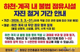 청양군, 하천 불법 점유물 일제 정비… “공공성 회복·재해 예방 총력”