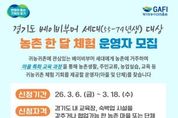 전국연합뉴스 조민준 기자 | 경기도와 경기도농수산진흥원은 ‘경기도 베이비부머 농촌 한 달 체험’을 운영할 마을·단체 2곳을 오는 18일까지 모집한다. 경기도귀농귀촌지원센터의 심사를 거쳐 선정된 체험 마을·단체 한 곳당 5개 팀을 맡게 되며, 체험 운영 역량 강화를 위한 멘토 교육과 프로그램 참가자 1팀당 최대 200만 원의 운영비가 지원된다. 마을·단체는 귀농·귀촌을 준비하는 베이비부머 세대(1955~1974년생)가 한 달간 농촌에 거주하며 영농실습과 지역민 교류를 체험할 수 있도록 임시 주거지와 교육 프로그램을 제공해야 한다. 귀농·귀촌 교육 및 숙박이 가능한 도내 농촌 마을·단체라면 경기도귀농귀촌지원센터 누리집에서 내려받은 신청 서식을 전자우편으로 제출해 신청할 수 있다. 기타 자세한 사항은 누리집 공고문이나 전화 문의를 통해 확인 가능하다. 최창수 경기도농수산진흥원장은 “베이비부머 세대가 막연한 귀농·귀촌이 아닌, 충분한 체험과 준비 과정을 거쳐 안정적으로 정착할 수 있도록 지원하겠다”며 “역량 있는 마을의 많은 참여를 기대한다”고 말했다.