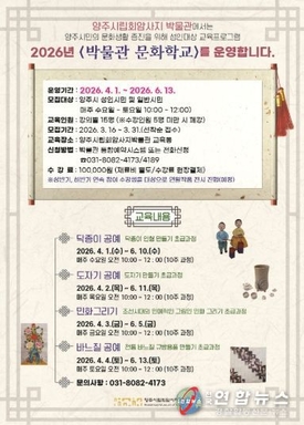 양주시립회암사지박물관, ‘2026 박물관 문화학교’상반기 수강생 모집