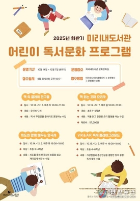원주시 미리내도서관, 하반기 어린이 독서문화 프로그램 운영
