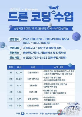 원주시 샘마루도서관, 하반기 '드론 코딩 수업' 운영